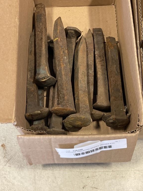 VINTAGE RAILROAD SPIKES, HOOKS ETC