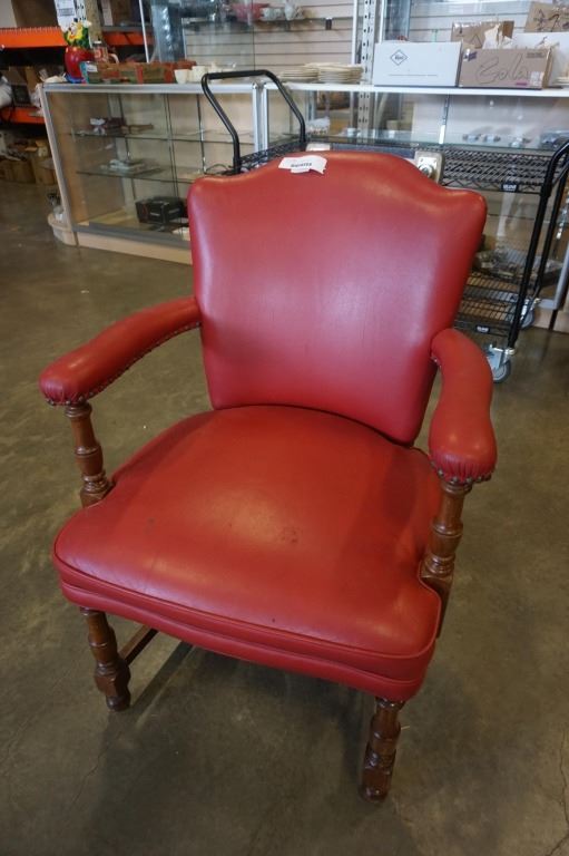 VINTAGE RED LEATHER STUDDED ARMCHAIR