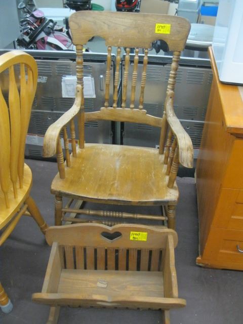 VINTAGE ROCKING CHAIR & A MAGAZINE RACK