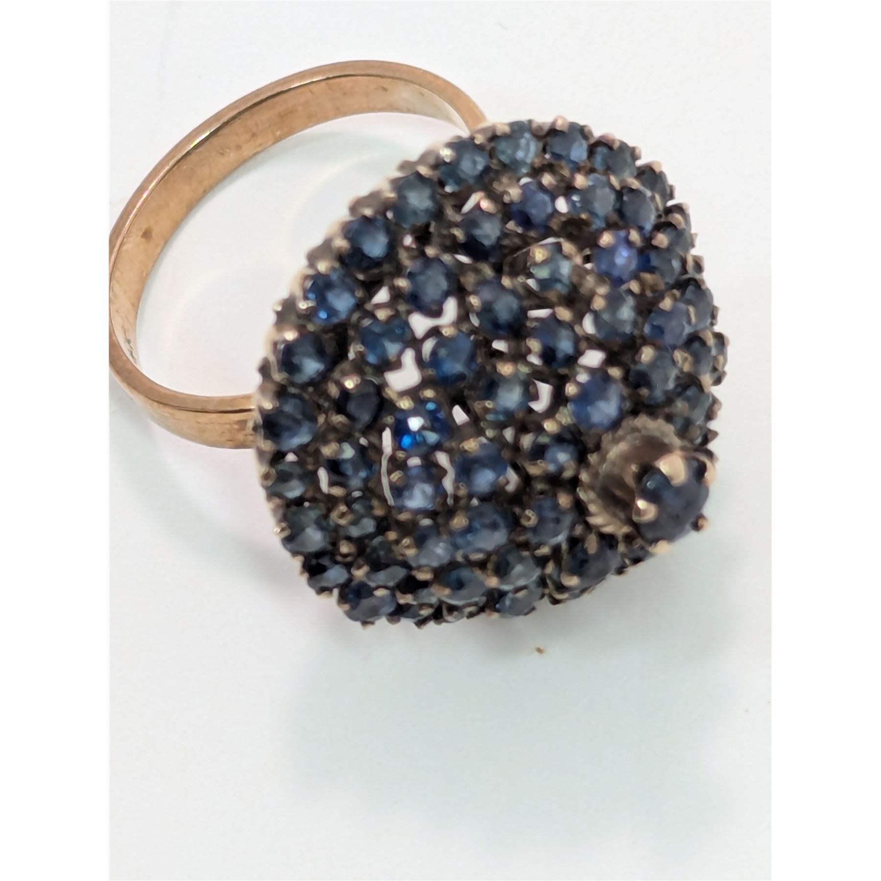 Vintage yellow gold sapphire dome cocktail ring, possibly a harem or princess ring style, from around the 1950s. Size 7