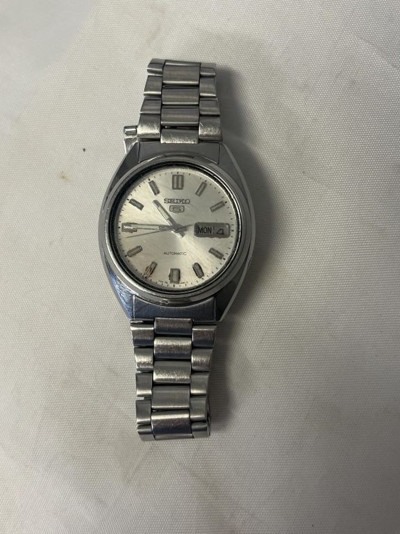 VINTAGE SEIKO AUTOMATIC SERIES 5 WATCH, DAYLIGHT, ORIGINAL BAND, WORKS WELL