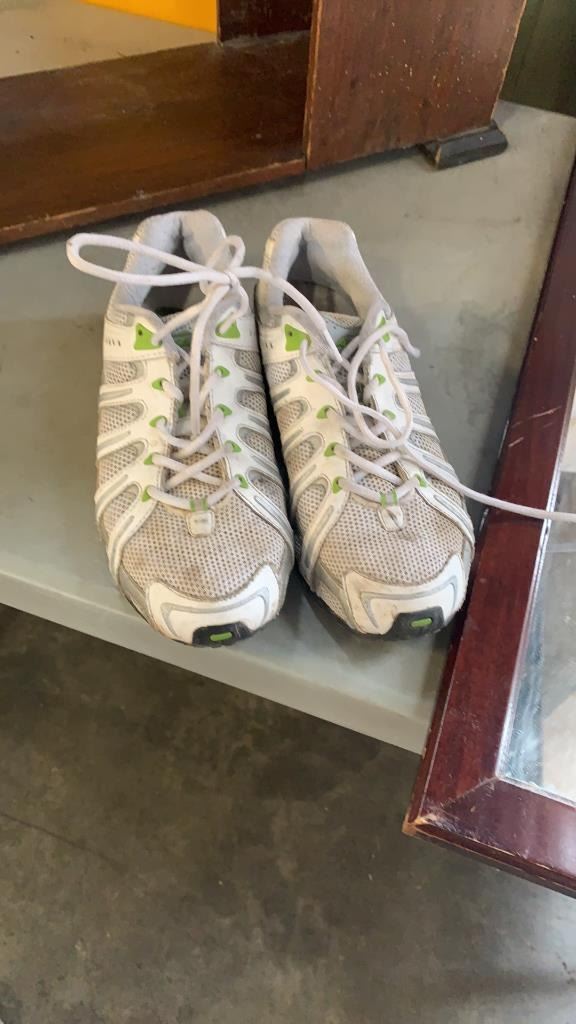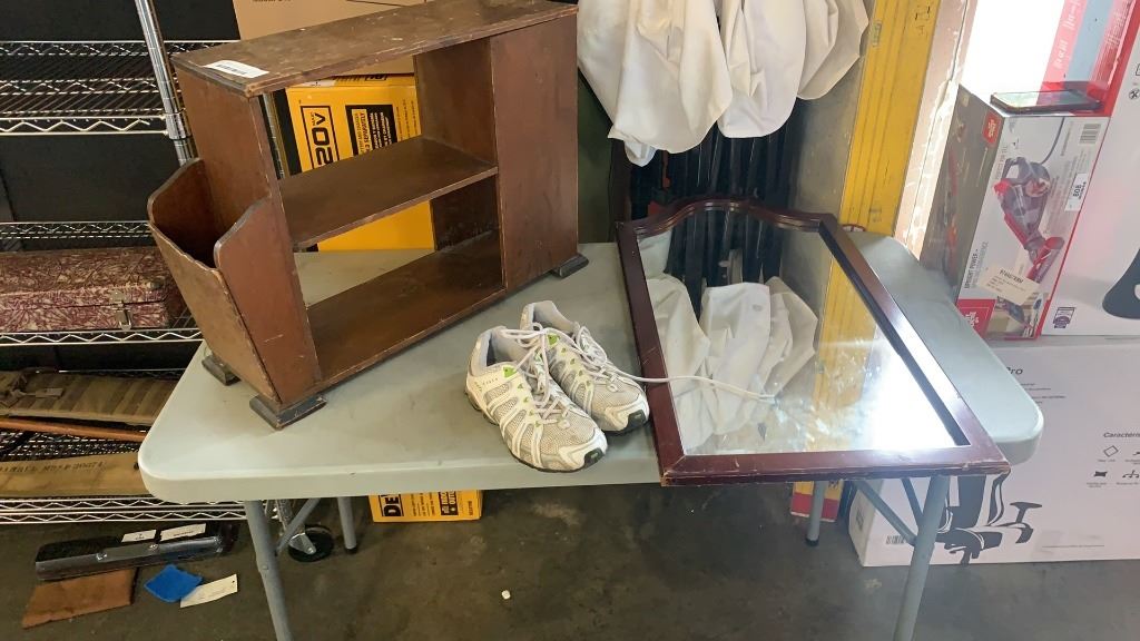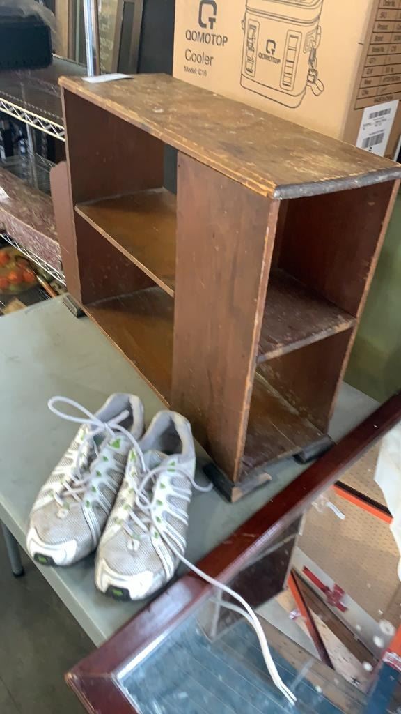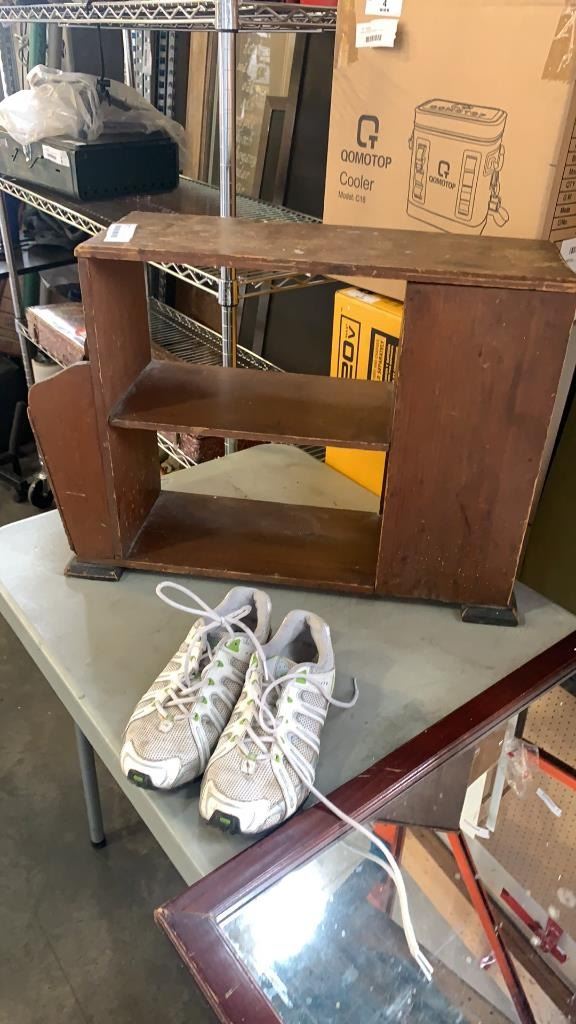 VINTAGE SHELF WITH MIRROR AND SIZE 8 SHOES