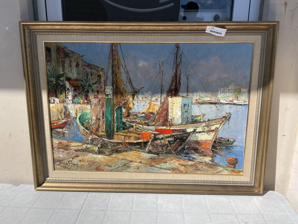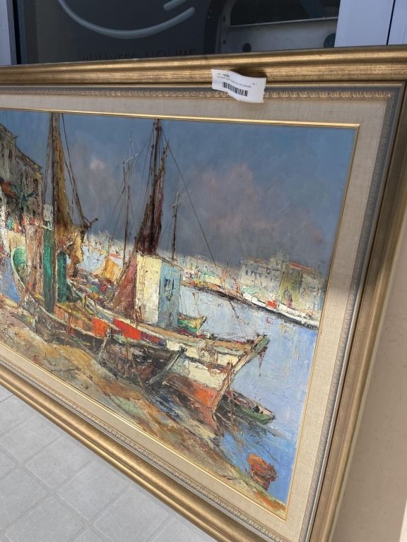 VINTAGE "SHIP" SIGNED OIL ON CANVAS, 30" X 42"