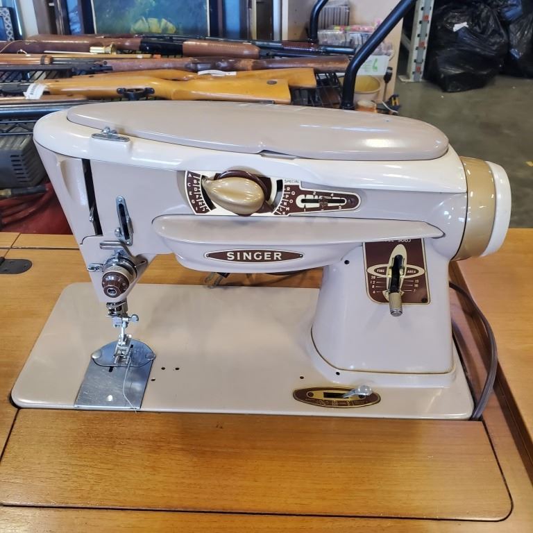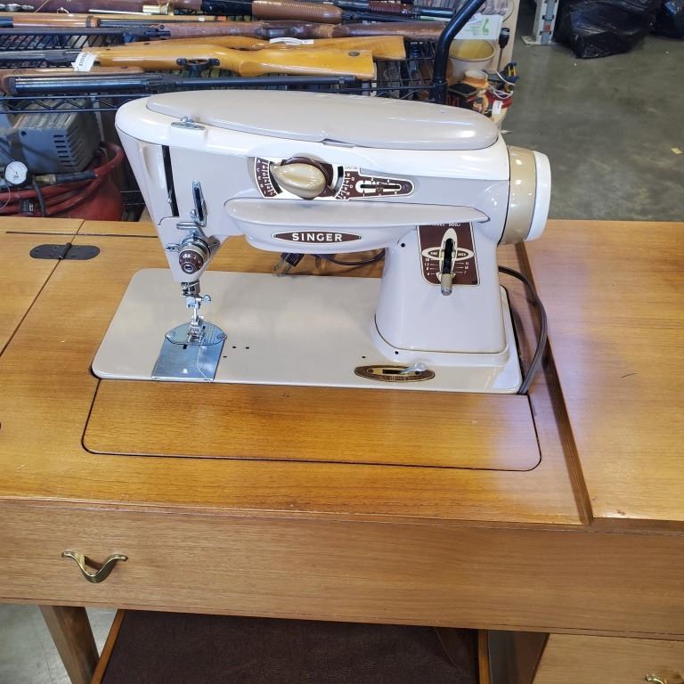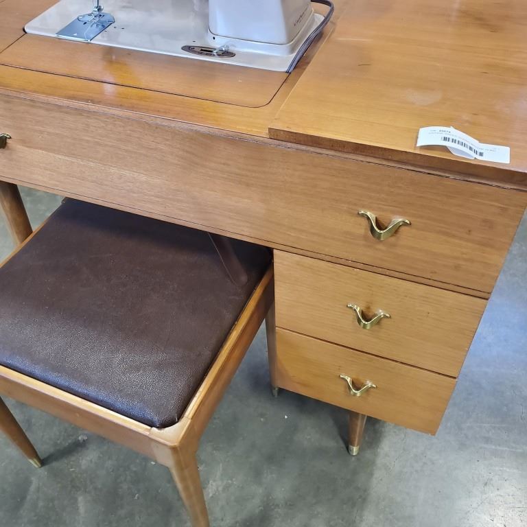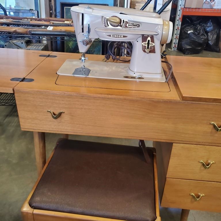 VINTAGE SINGER SEWING MACHINE IN MID CENTURY TABLE