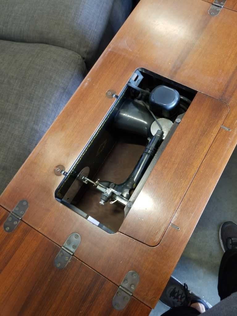 VINTAGE SINGER SEWING MACHINE IN SEWING TABLE