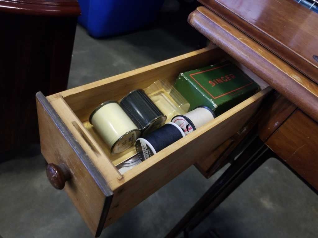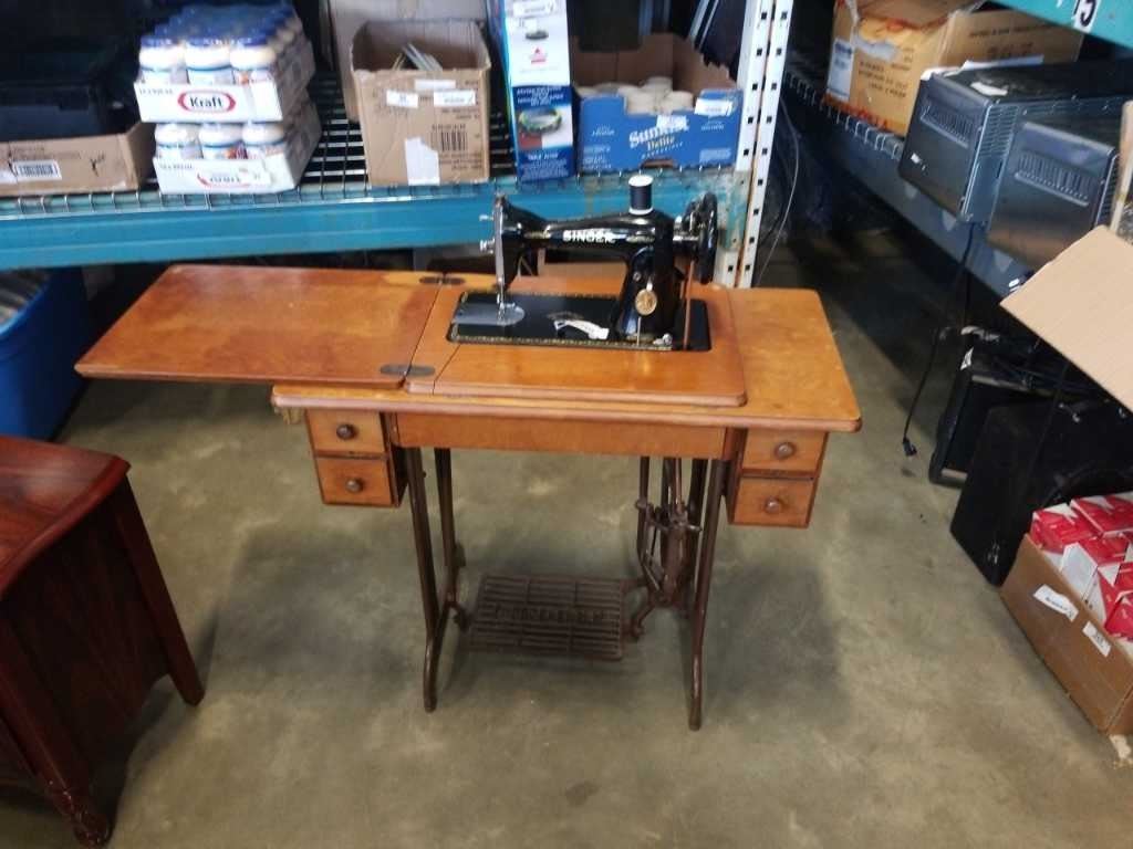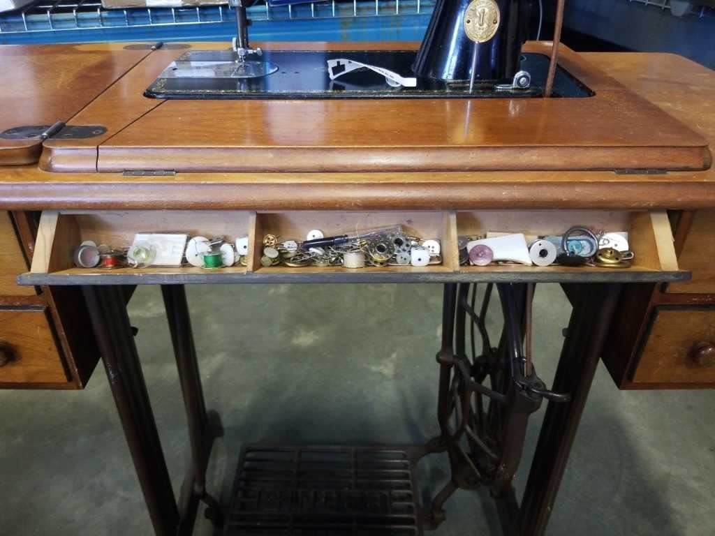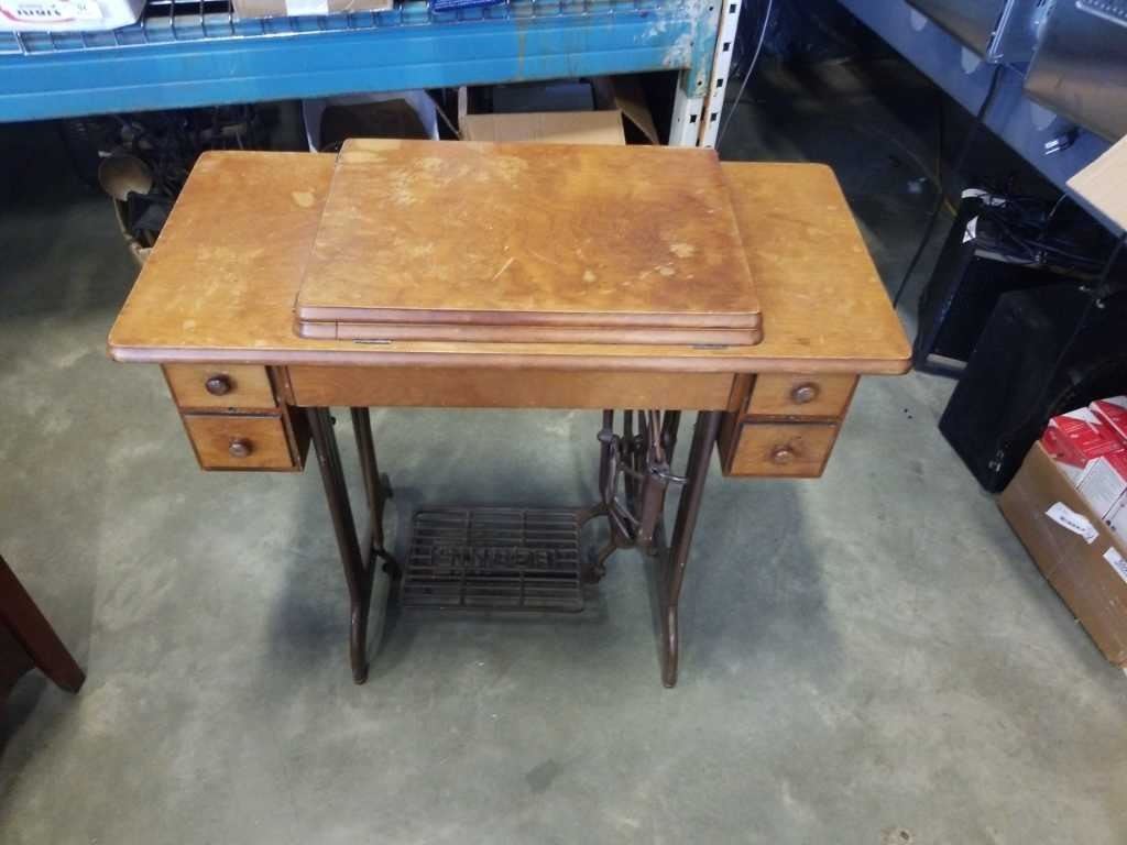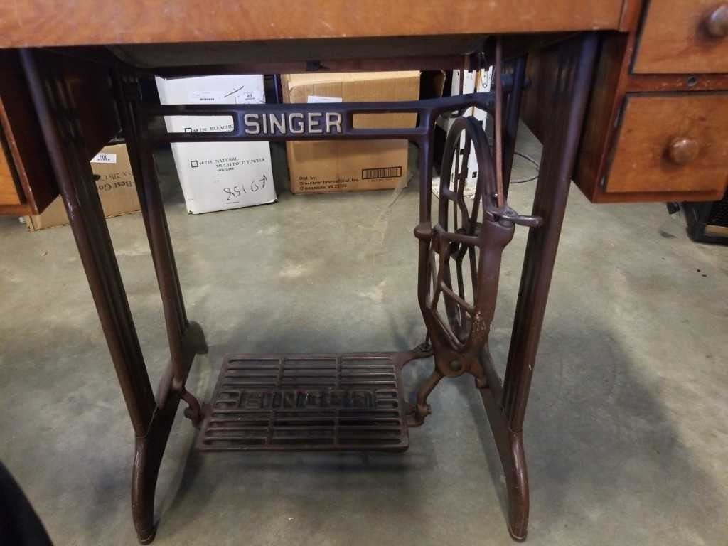 VINTAGE SINGER TREADLE BASE SEWING MACHINE IN TABLE