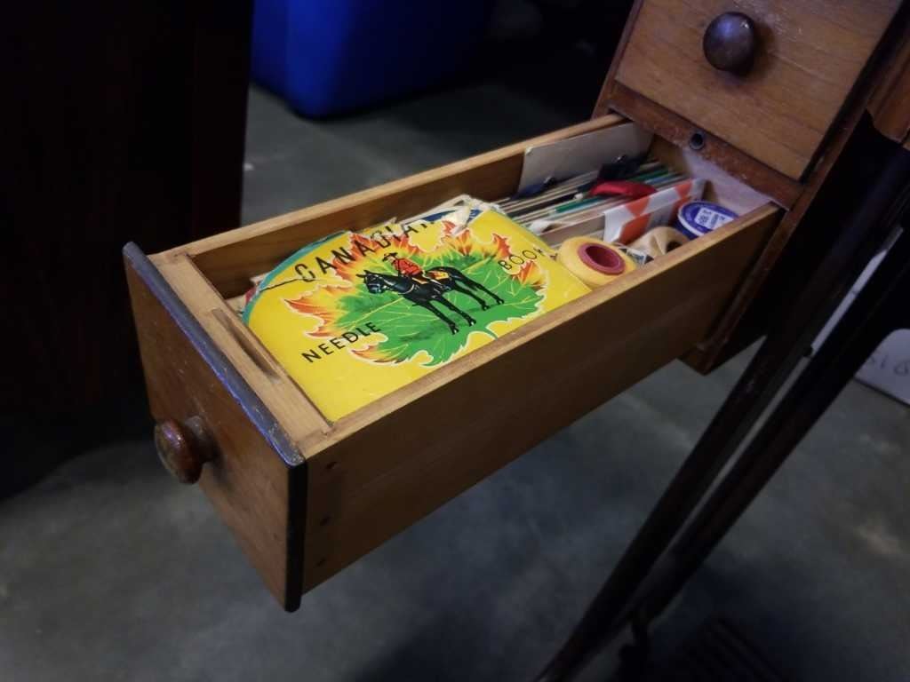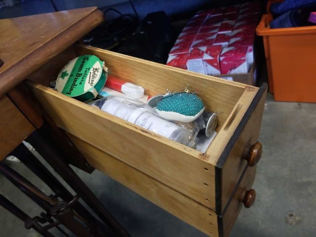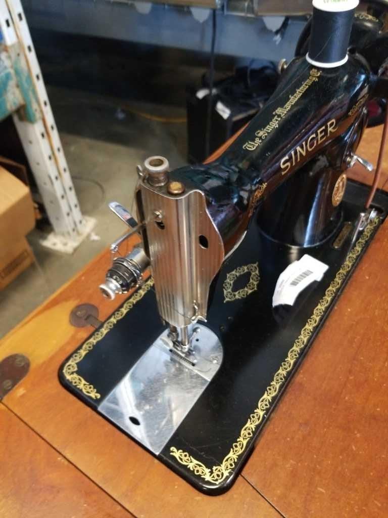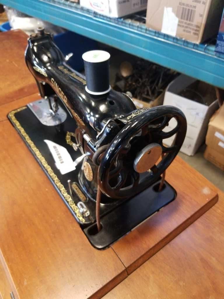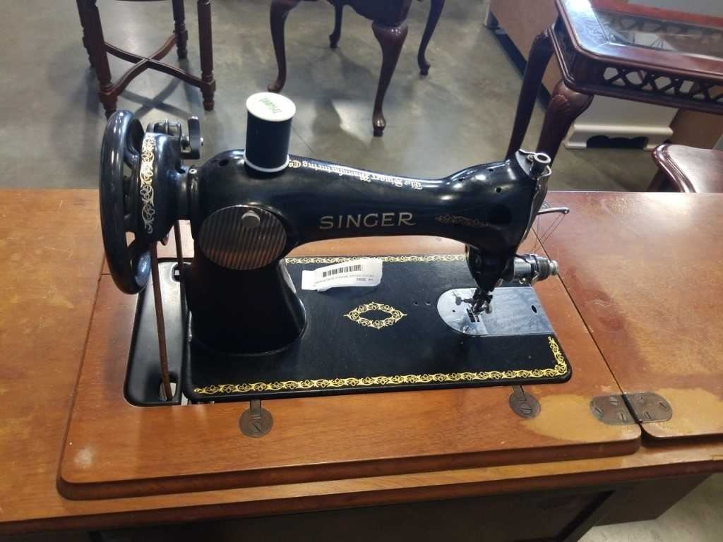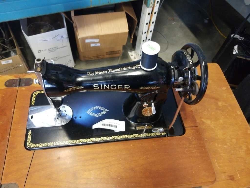 VINTAGE SINGER TREADLE BASE SEWING MACHINE IN TABLE