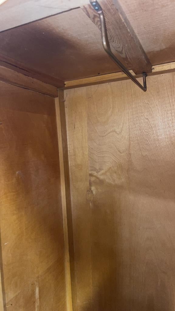VINTAGE SOLID WOOD WORDROBE APPROX 5FT TALL, NO KEY