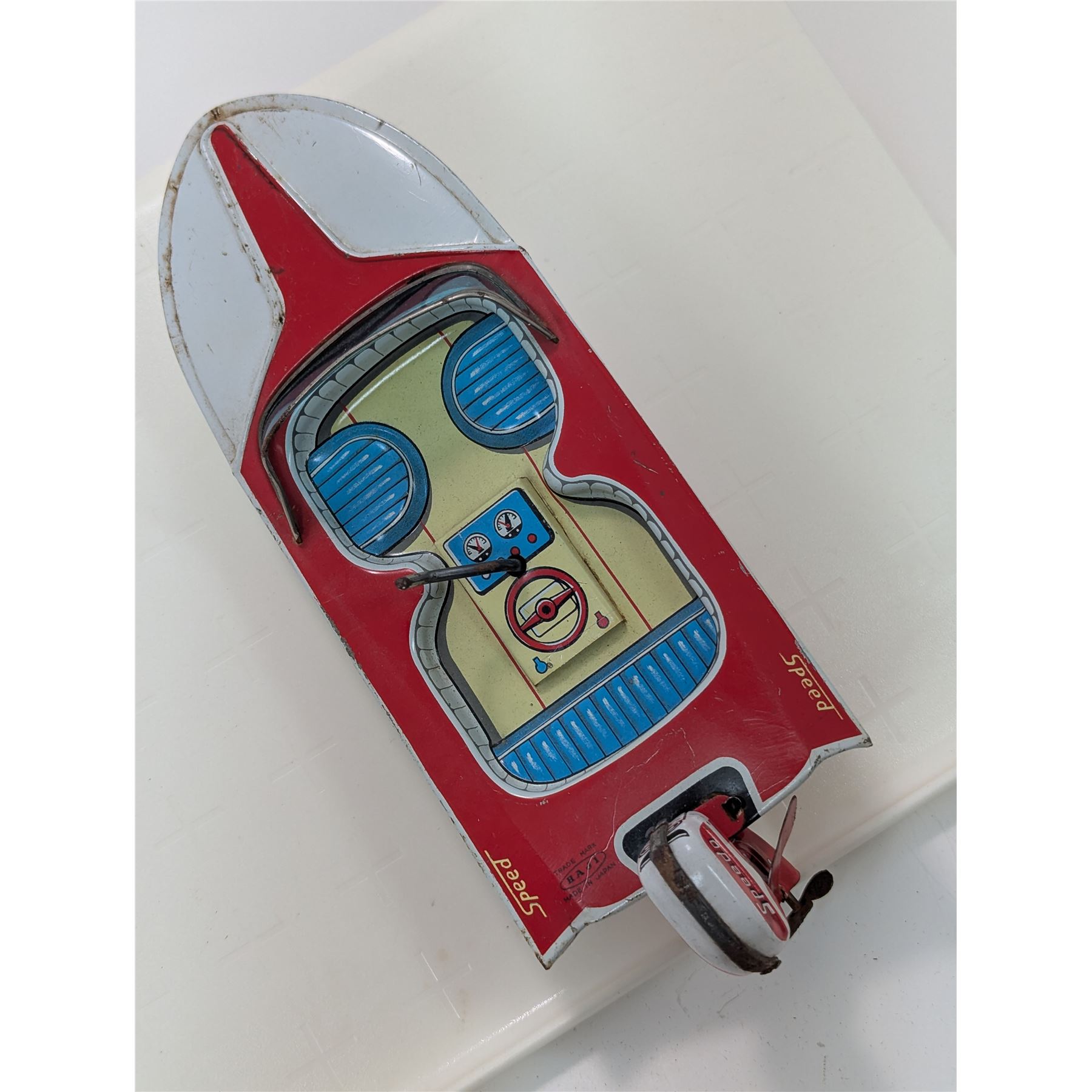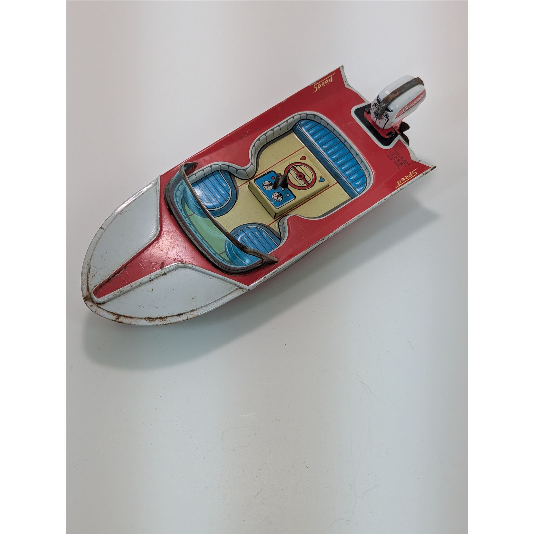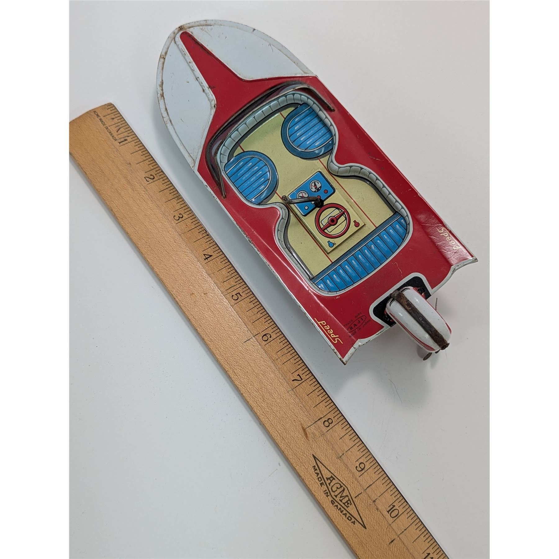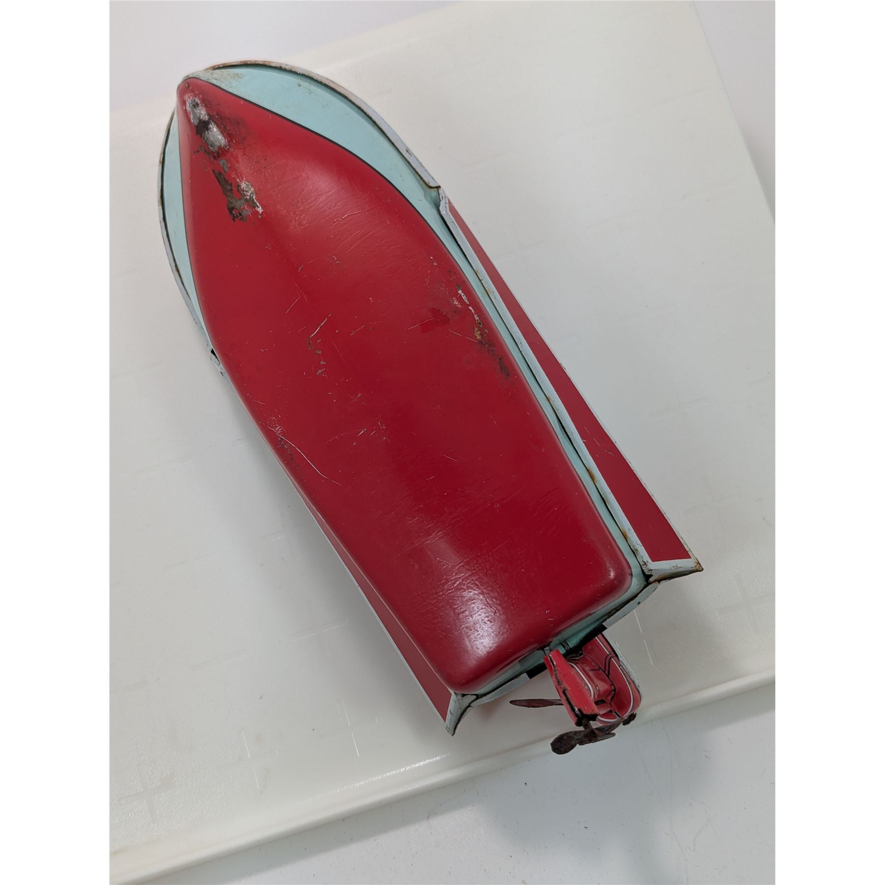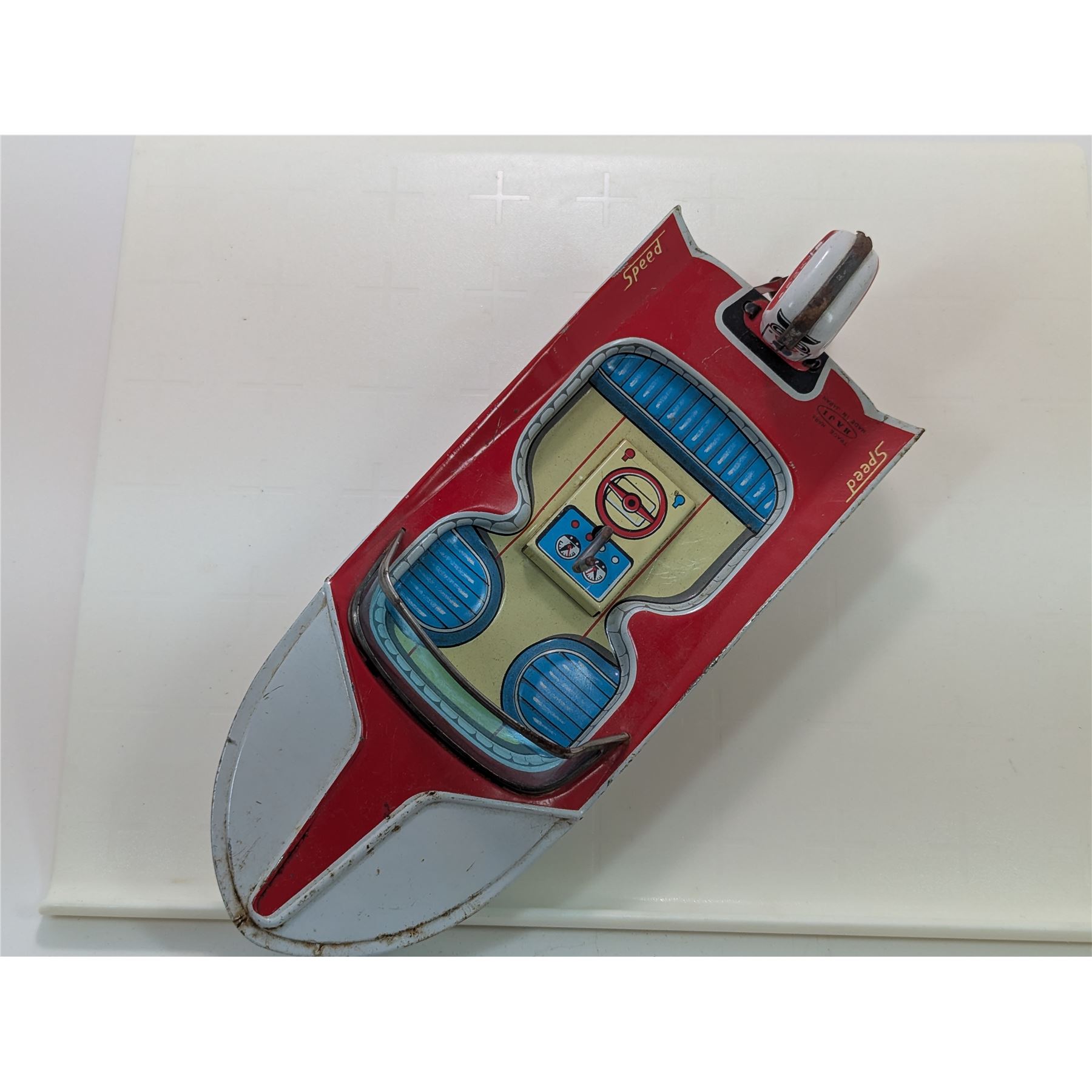 Vintage tin litho toy speedboat, manufactured by the Japanese company Haji.