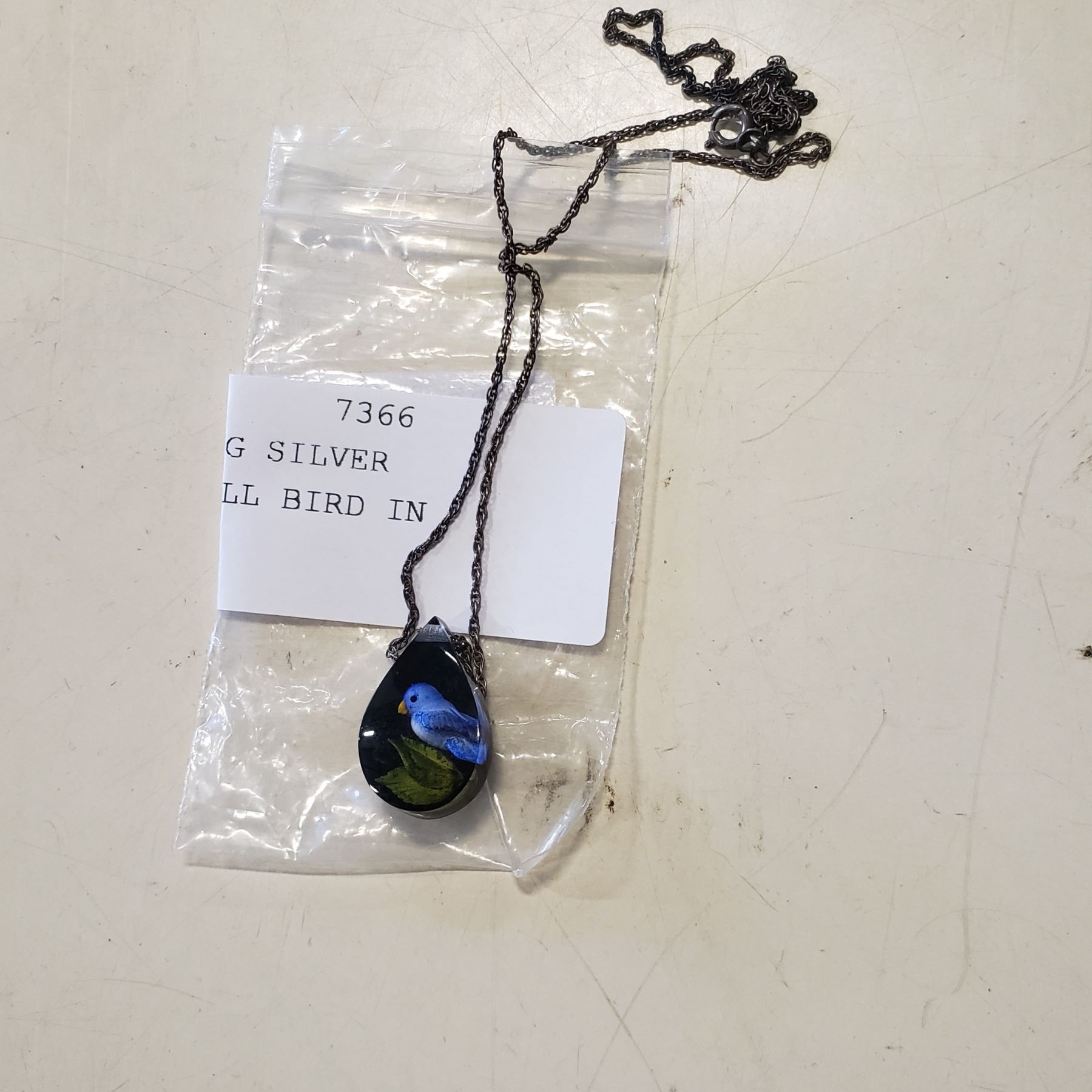 VINTAGE STERLING SILVER NECKLACE W/ SMALL BIRD IN LUCITE PENDANT