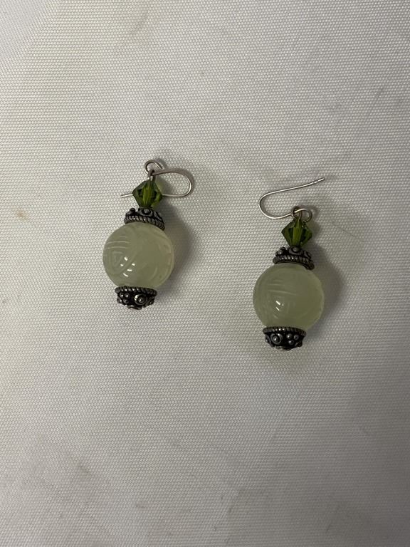 VINTAGE STERLING SILVER W/ HAND CARVED CHINESE JADE DANGLE EARRINGS