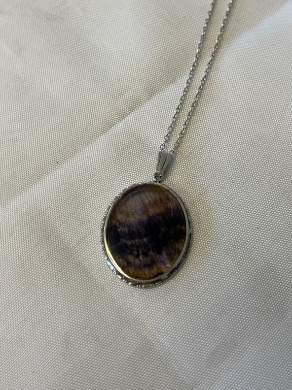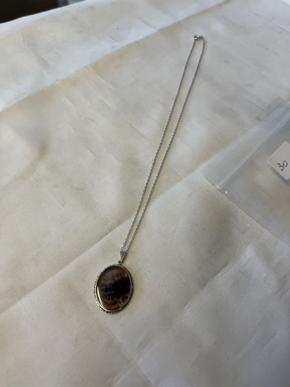 VINTAGE STERLING SILVER WITH CLEAR STONE PENDANT AND CHAIN NECKLACE