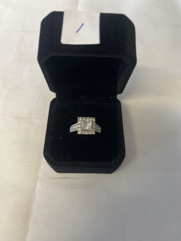 VINTAGE STERLING SILVER WITH WHITE STONES RING, MARKED INITIAL AND 925 SIZE 6.5