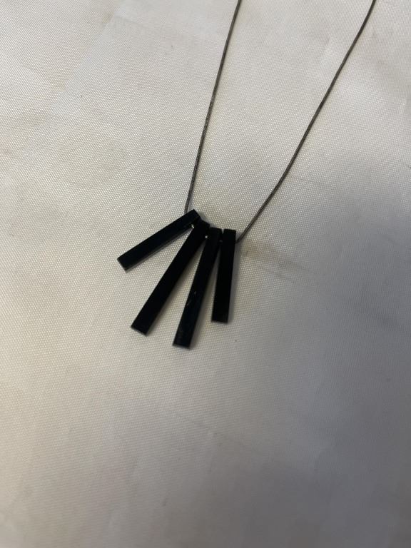VINTAGE STETLING SILVER W/ BLACK CELLULOID STONES NECKLACE MARKED 925