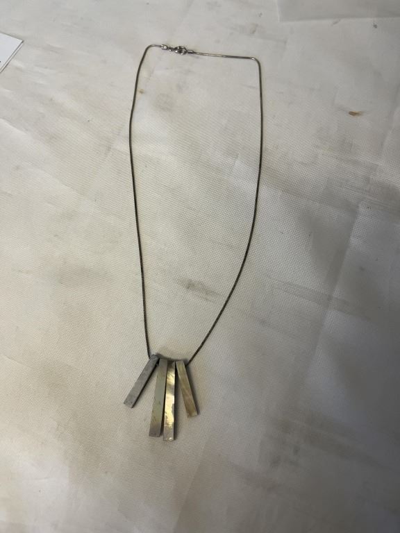 VINTAGE STETLING SILVER W/ BLACK CELLULOID STONES NECKLACE MARKED 925