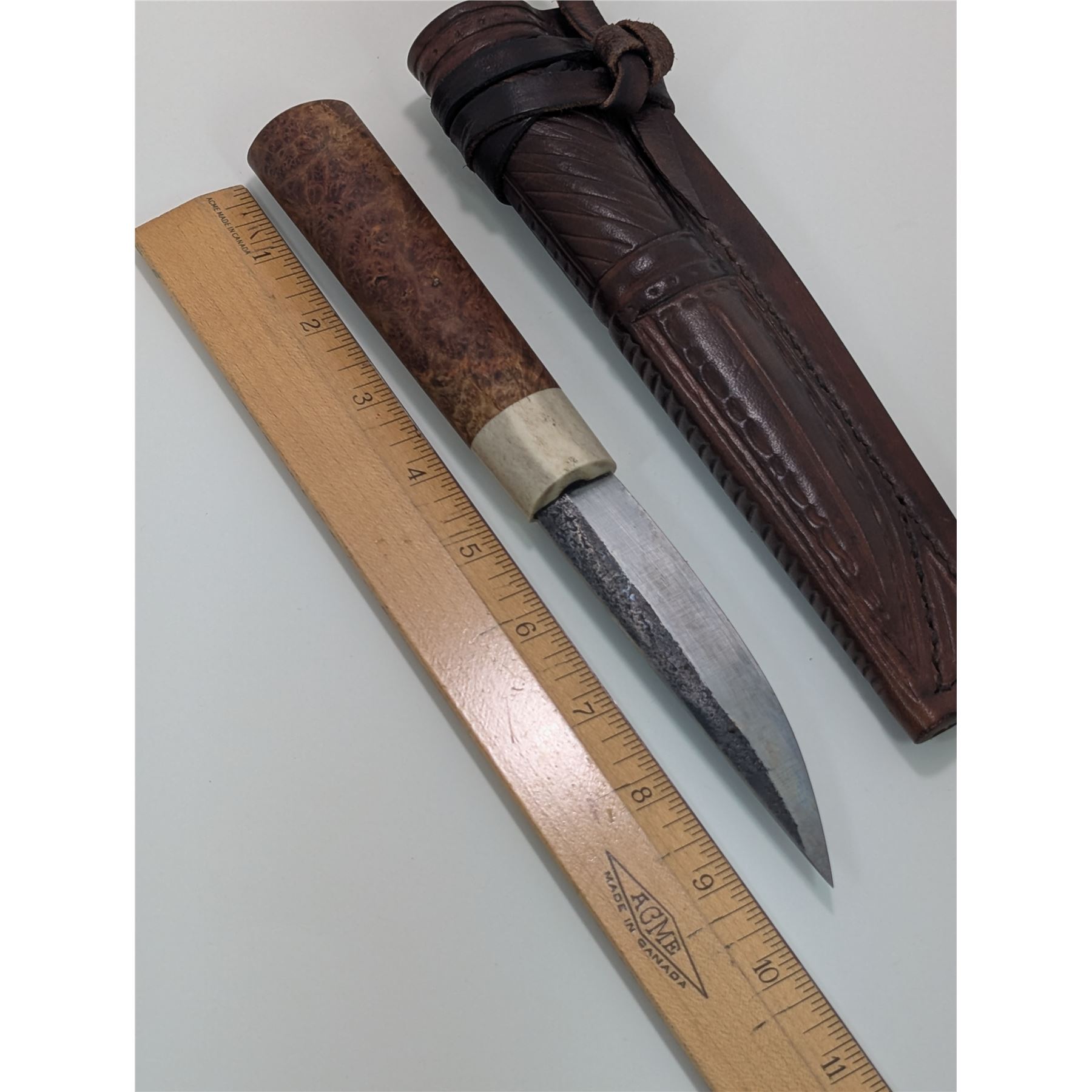 VINTAGE SYBERIAN YAKUTIA YAKUTIA HUNTING KNIFE Made in Ukraine Handcrafted hardened steel blade with beautiful wood handle.makers Mark on inside of the blade.