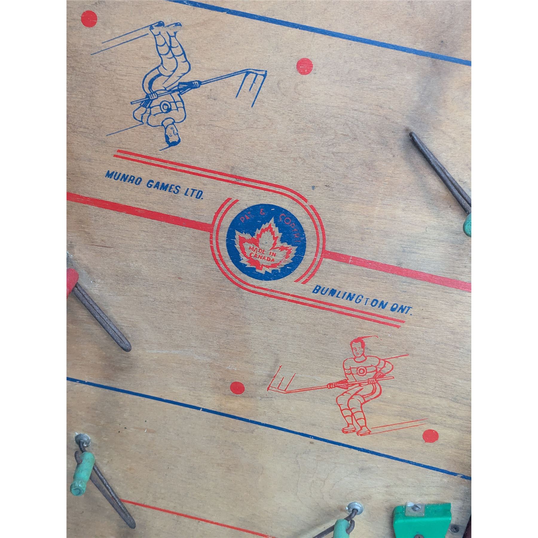 Vintage Munro Games wooden table top hockey game. The game was invented in the 1930s by Donald H. Munro, Sr. in Toronto, Canada.