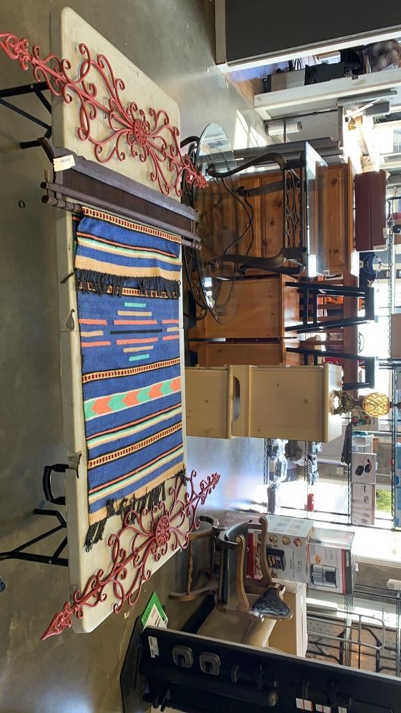 VINTAGE TAPESTRY ON HANGER WITH 2 METAL WALL ART
