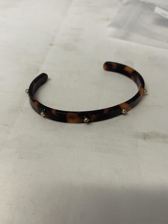 VINTAGE TORTOISE SHELL OPEN CUFF BANGLE W/ 6 GOLD DOTS