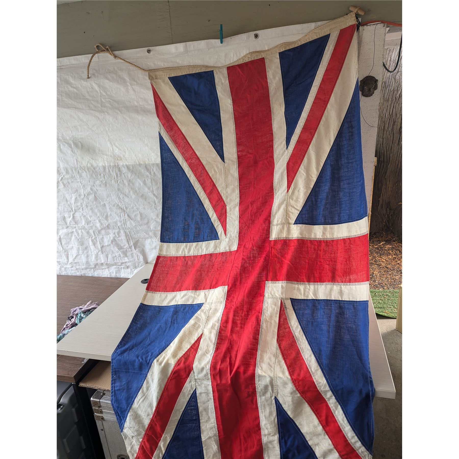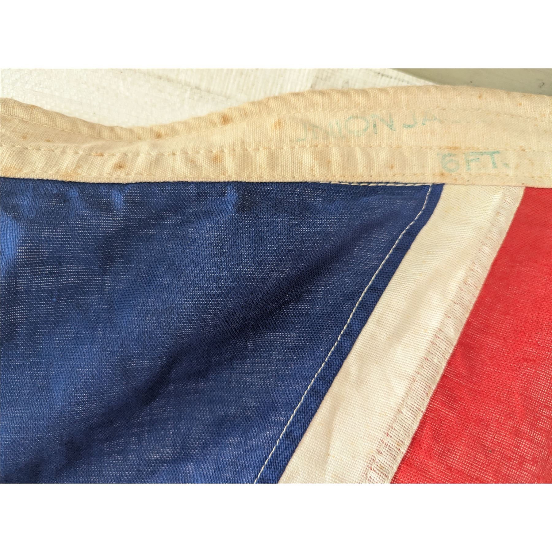 This is a hand sewn vintage UNION JACK 6' FLAG. With hemp rope and wooden bullard.