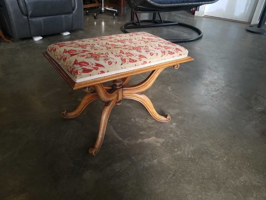 VINTAGE WOOD FOOTSTOOL - STITCHED CUSHION