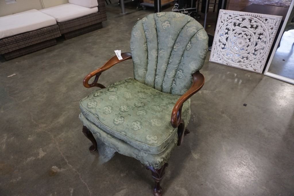 VINTAGE WOOD FRAME CHANNEL BACK CHAIR