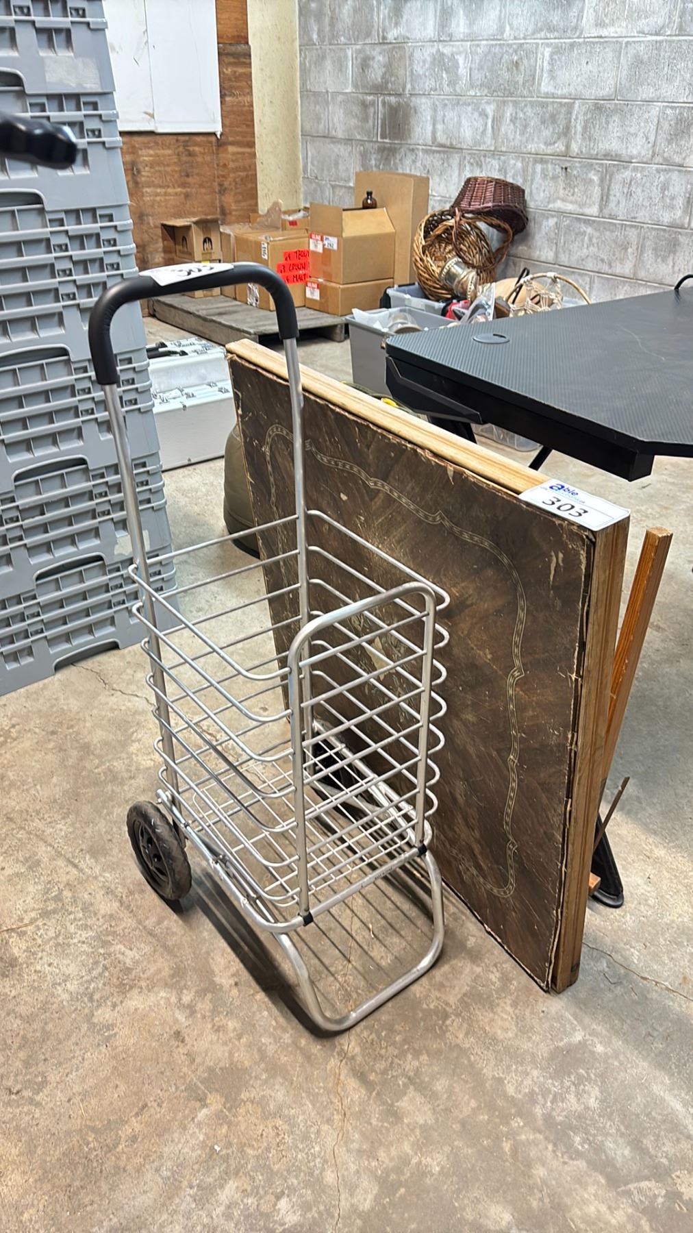 VINTAGE WOODEN FOLDING CARD TABLE & SMALL FOLDING UTILITY CART