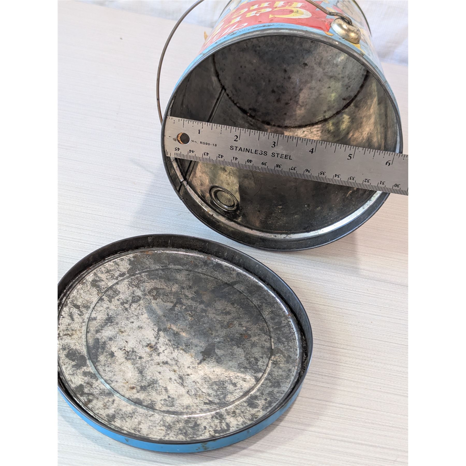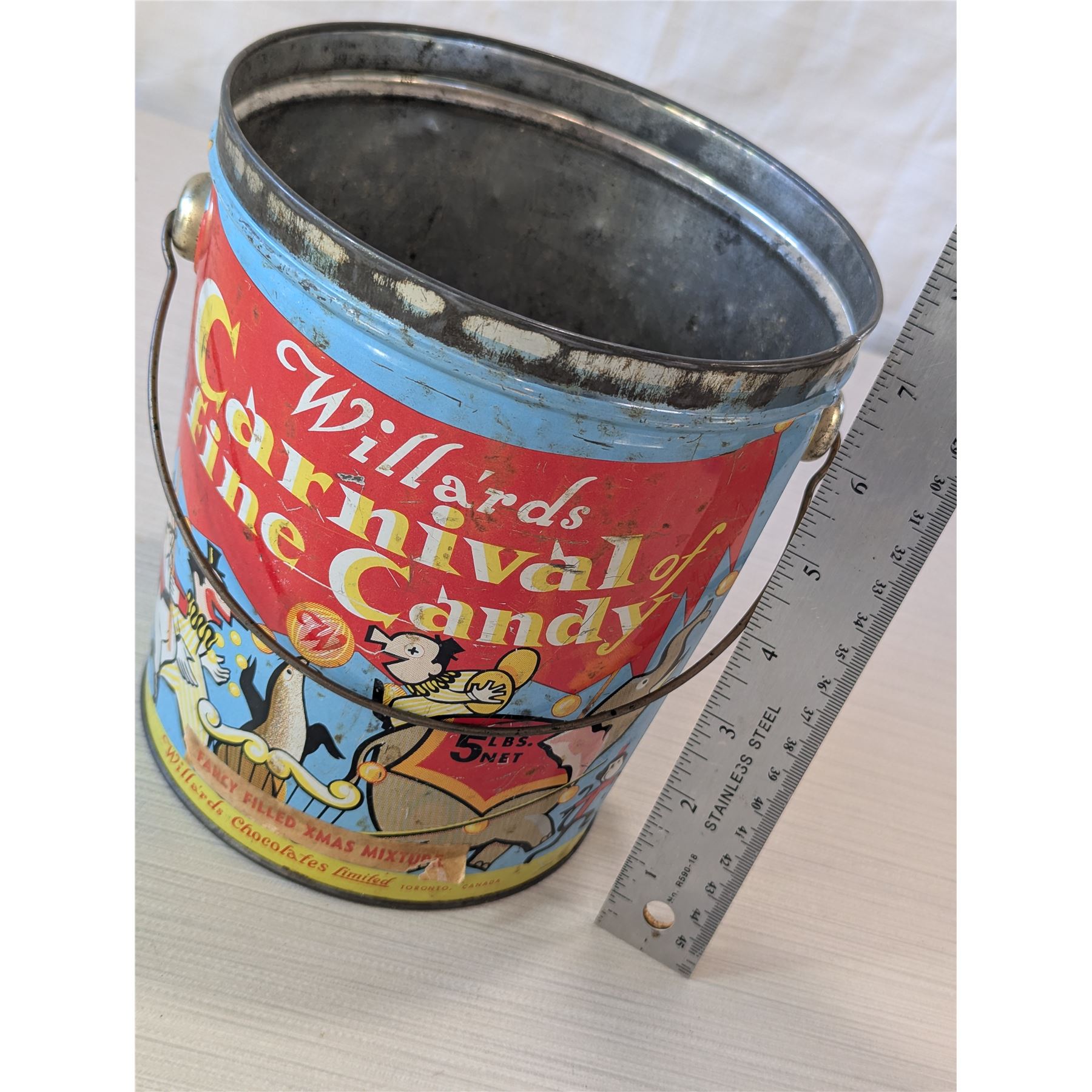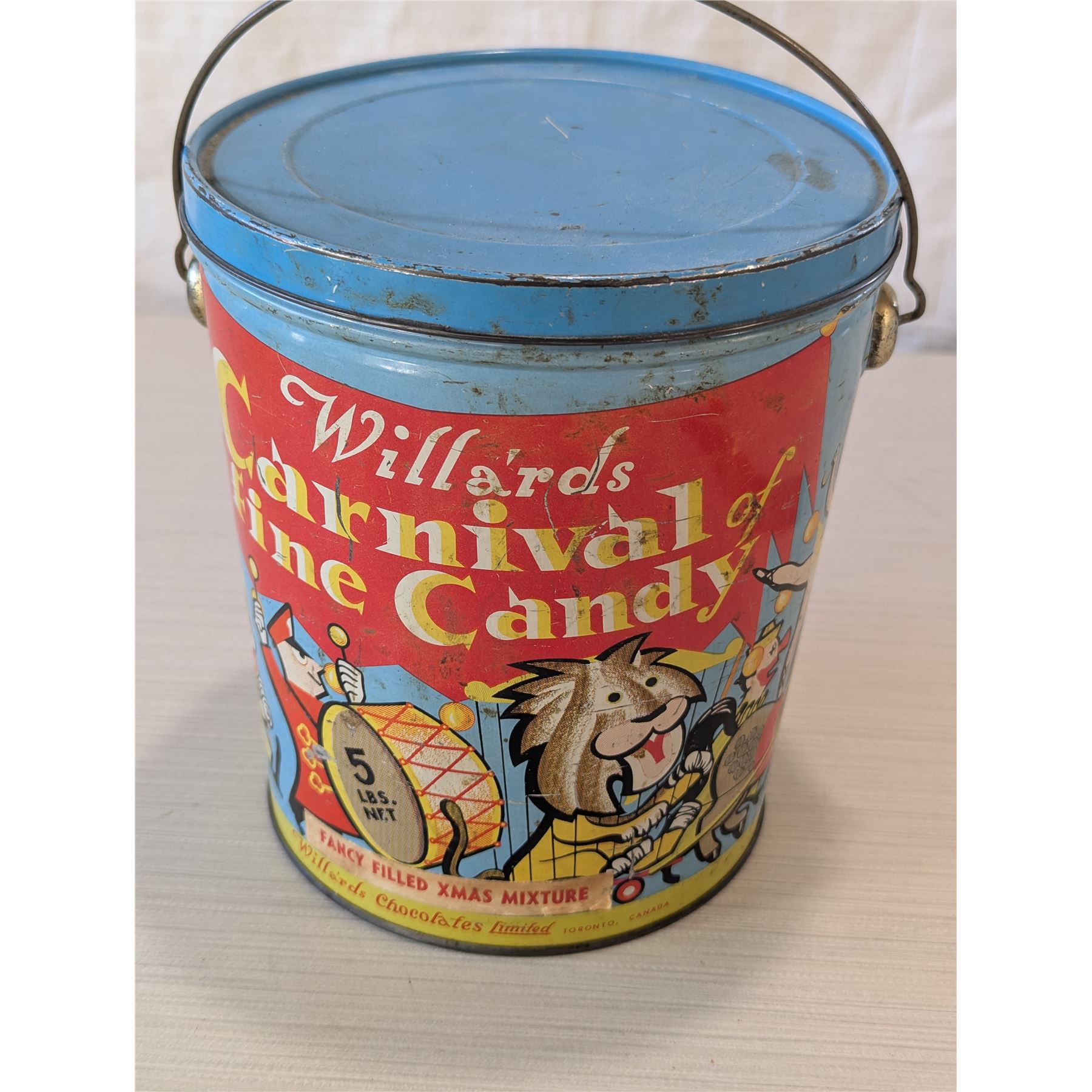 The tin advertises "Fancy Filled Xmas Mixture" and states a net weight of "5 LBS."
