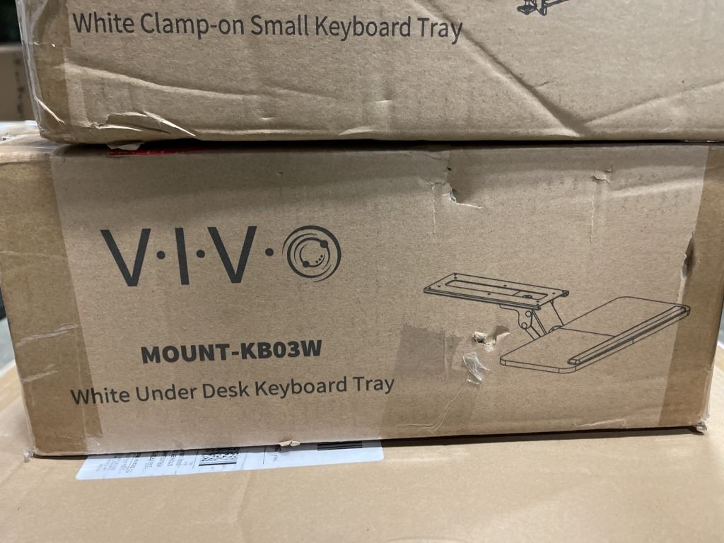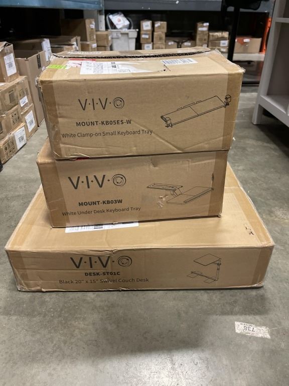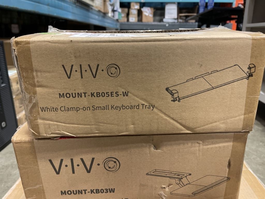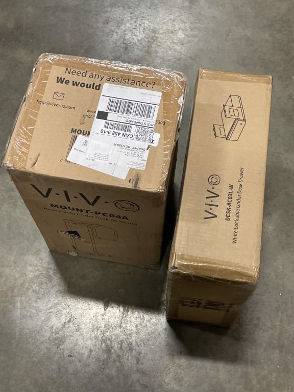 VIVO BLACK SWIVEL COUCH DESK, 20 INCH X 15 INCH, VIVO WHITE LOCKABLE UNDER DESK DRAWER, AND UNDER DESK CPU MOUNT