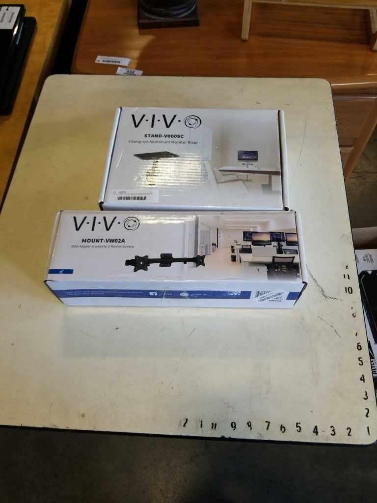 VIVO CLAMP ON ALUMINUM MONITOR RISER AND ADAPTER BRACKET FOR 2 MONITOR SCREENS