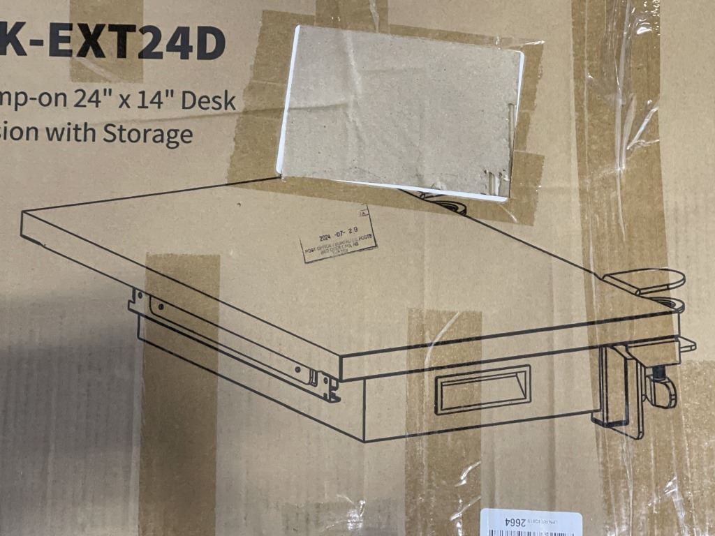 VIVO CLAMP ON DESK EXTENSION WITH STORAGE, 24X14 INCH AND UNDER DESK LARGE DRAWER