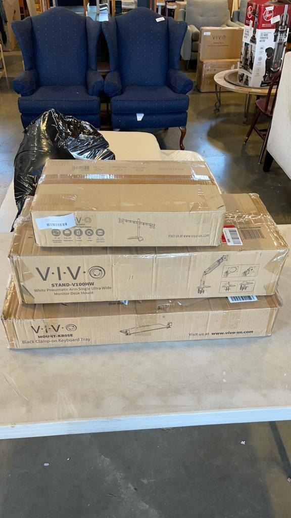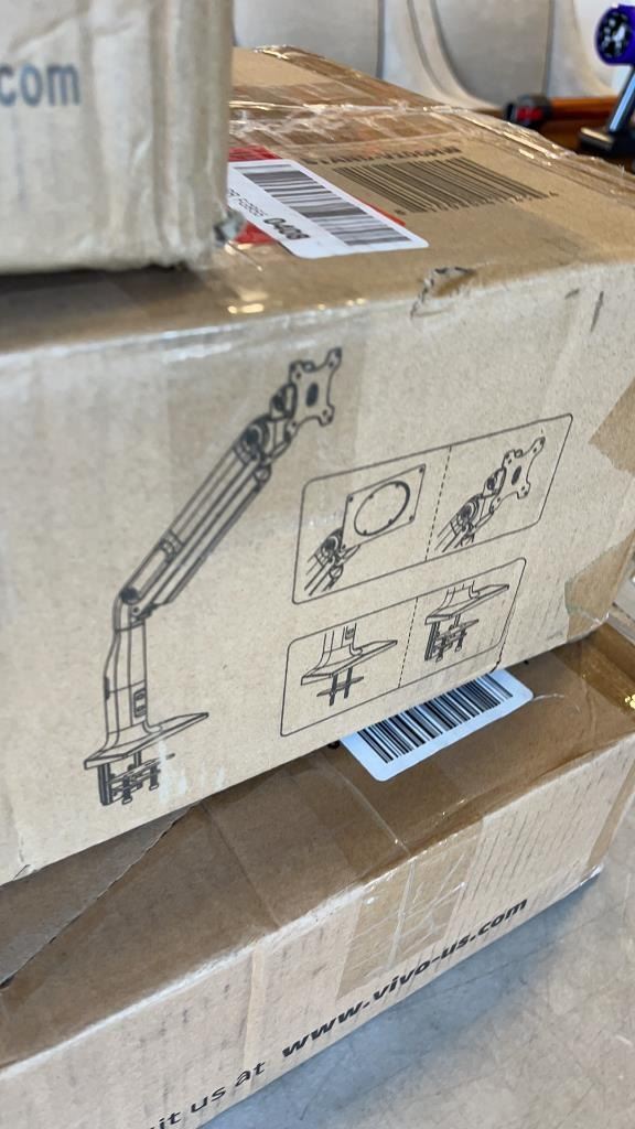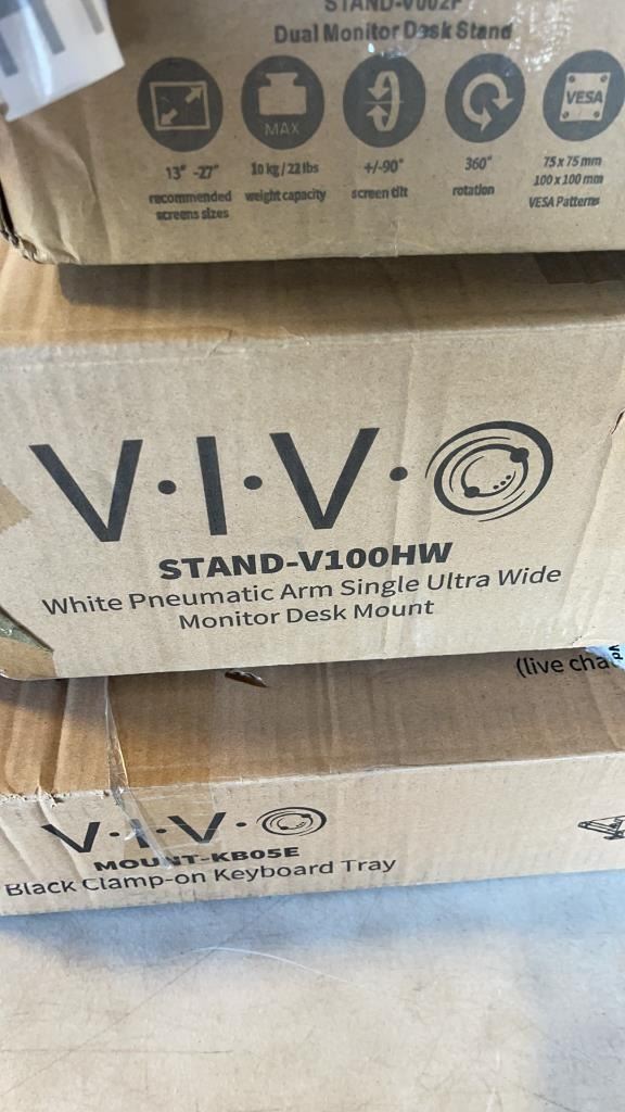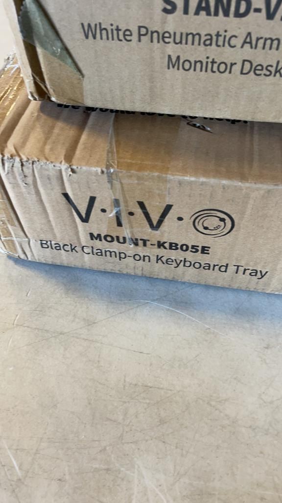 VIVO CLAMP ON KEYBOARD TRAY, PHEUMATIC ARM SINGLE ULTRA WIDE DESK MOUNT, DUAL MONITOR MOUNT