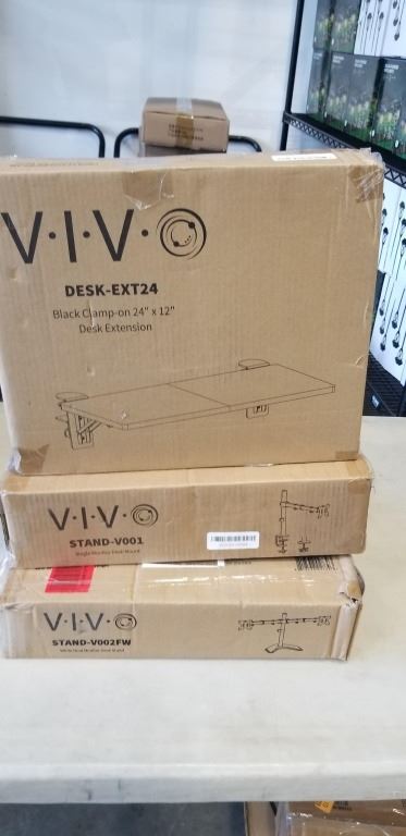 VIVO DUAL MONITOR DESK STANBD, CLAMP ON 24X12 DESK EXTENSION AND SINGLE MONITOR DESK MOUNT