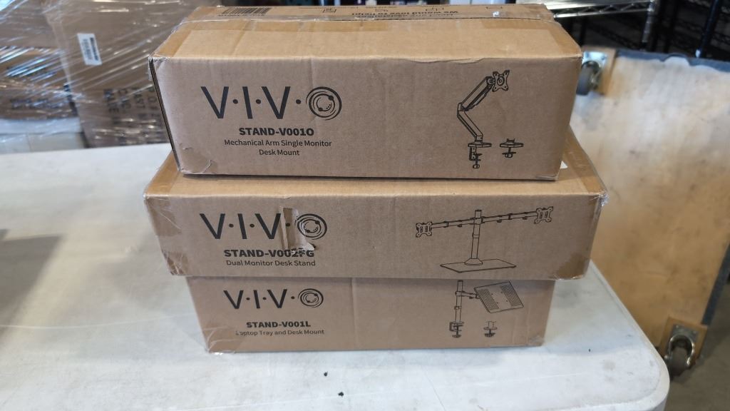 VIVO DUAL MONITOR DESK STAND, LAPTOP DESK MOUNT, AND SINGLE MONITOR ADJSTABLE DESK MOUNT