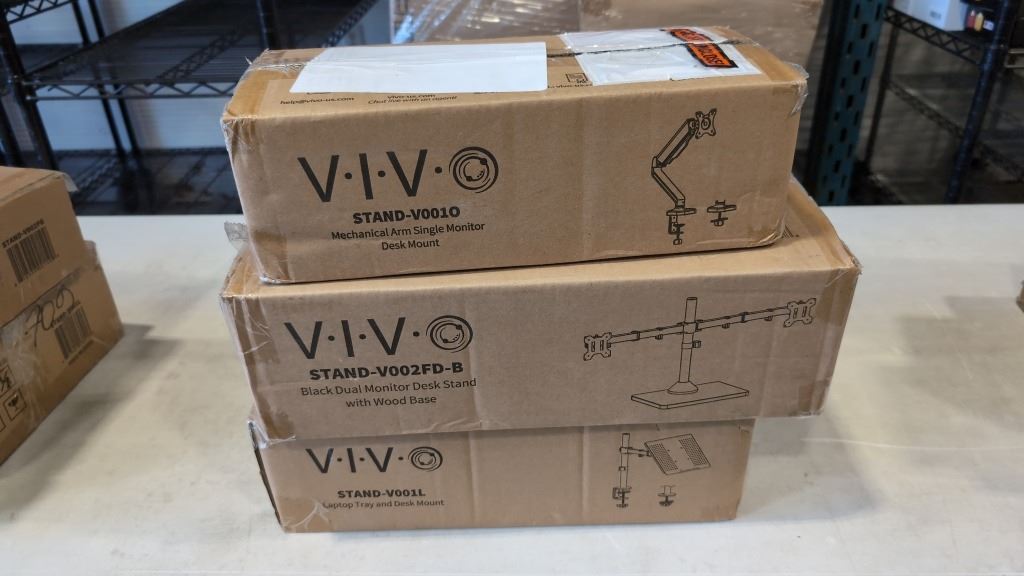 VIVO DUAL MONITOR DESK STAND, LAPTOP DESK MOUNT, AND SINGLE MONITOR ADJSTABLE DESK MOUNT