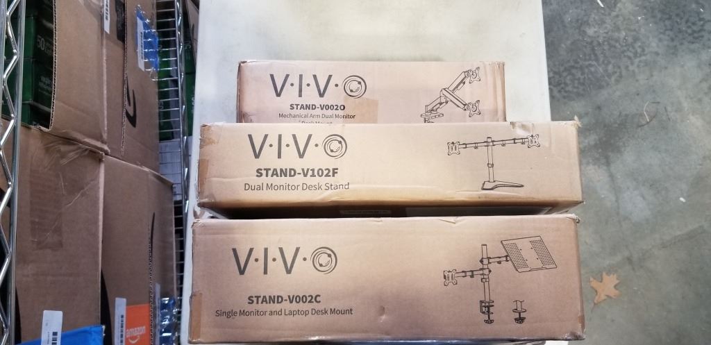 VIVO DUAL MONITOR DESK STAND, MECHANICAL ARM DUAL MONITOR DESK MOUNT AND SINGLE MONITOR AND LAPTOP D
