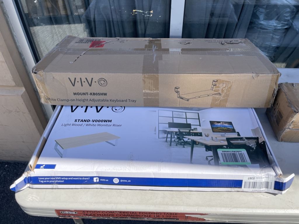 VIVO DUAL MONITOR MOUNT, KEYBOARD TRAY AND MONITOR STAND