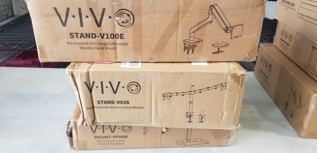 VIVO DUAL ULTRA WIDE MONITOR DESK MOUNT, MECHANICAL SINGLE MONITOR DESK MOUNT, CEILING PROJECTOR TRA