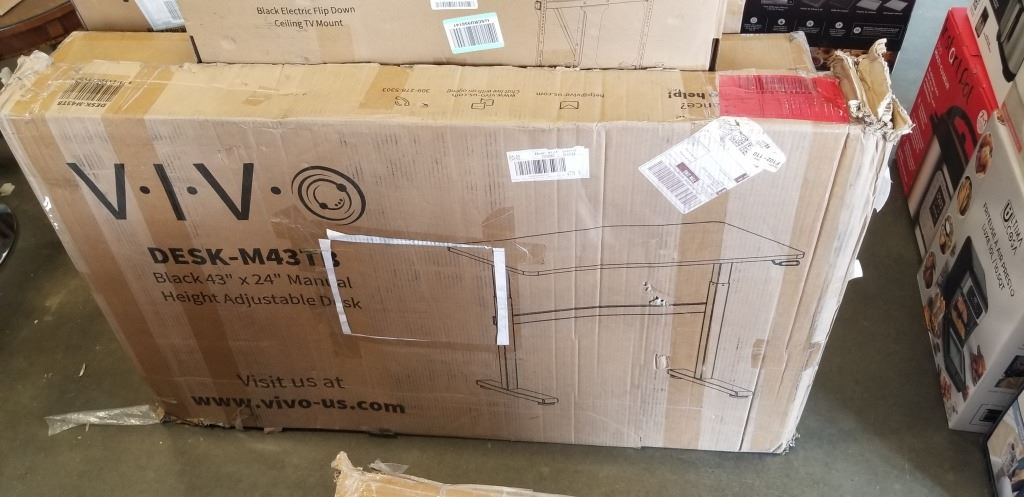 VIVO MANUAL HEIGHT ADJUSTABLE DESK, 43" X 24, BLACK
