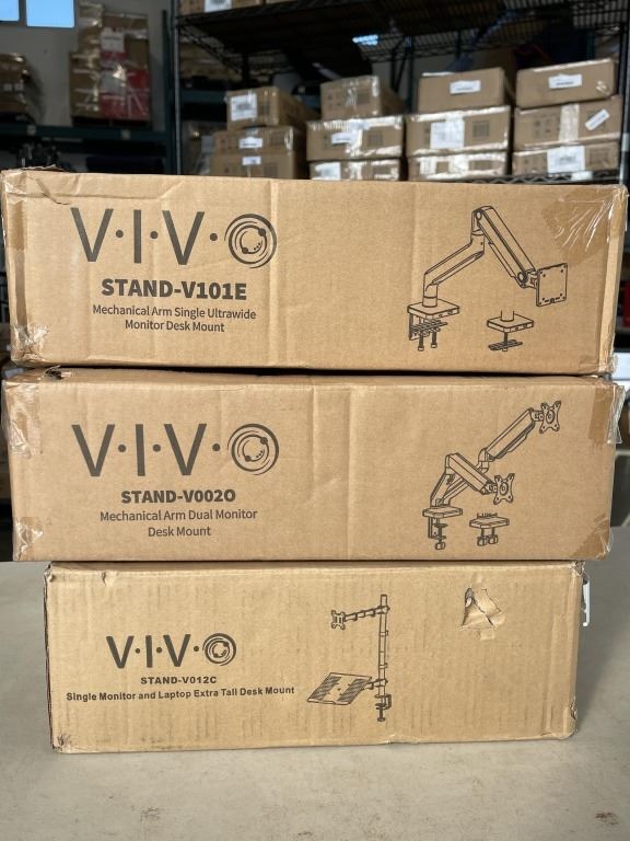 VIVO MECHANICAL ARTM DUAL MONITOR DESK MOUNT, SINGLE ARM ULTRAWIDE DESK MOUNT AND SINGLE MONITOR AND