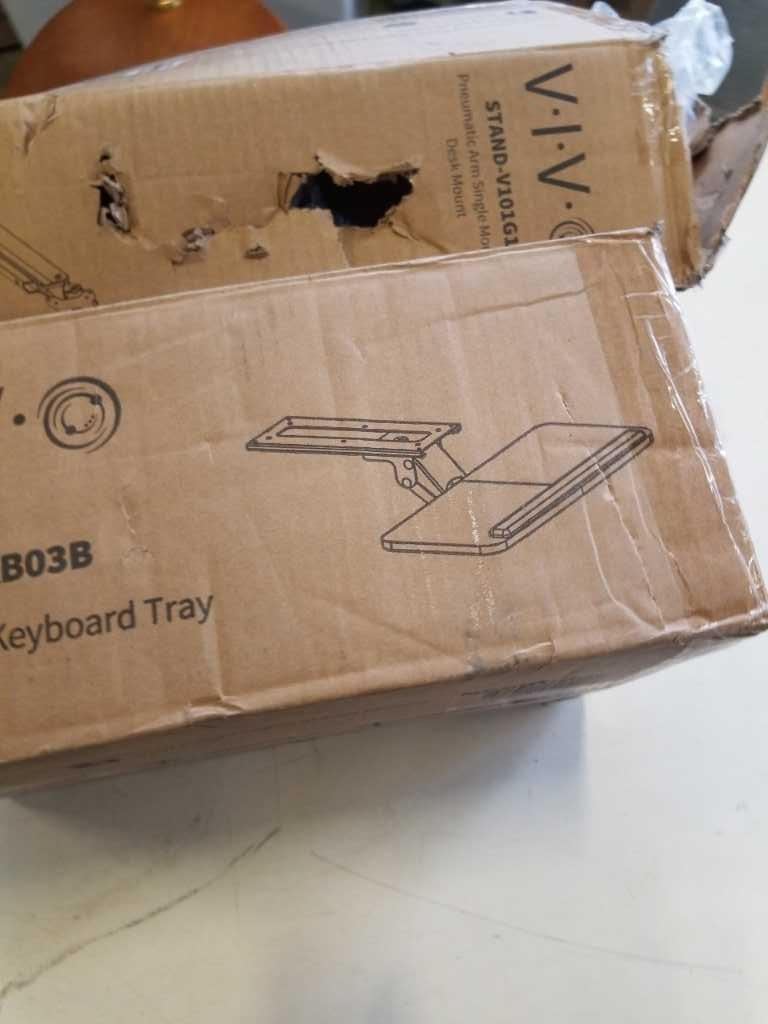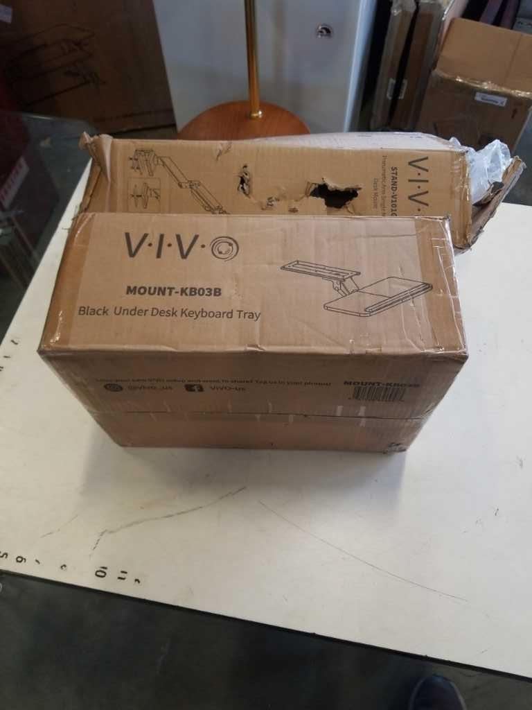 VIVO PNEUMATIC ARM SINGLE MONITOR DESK MOUNT AND BLACK UNDER DESK KEYBOARD TRAY