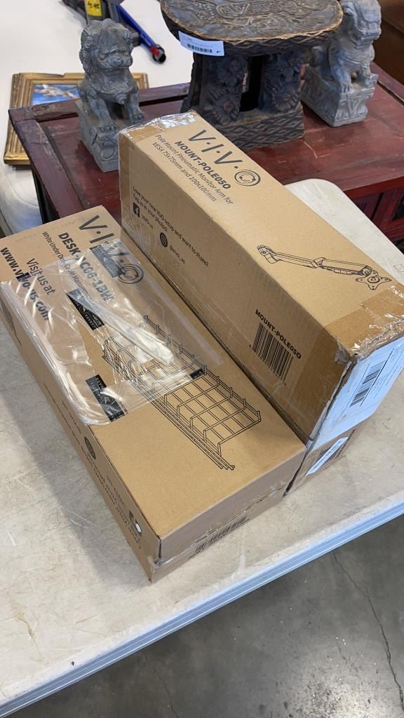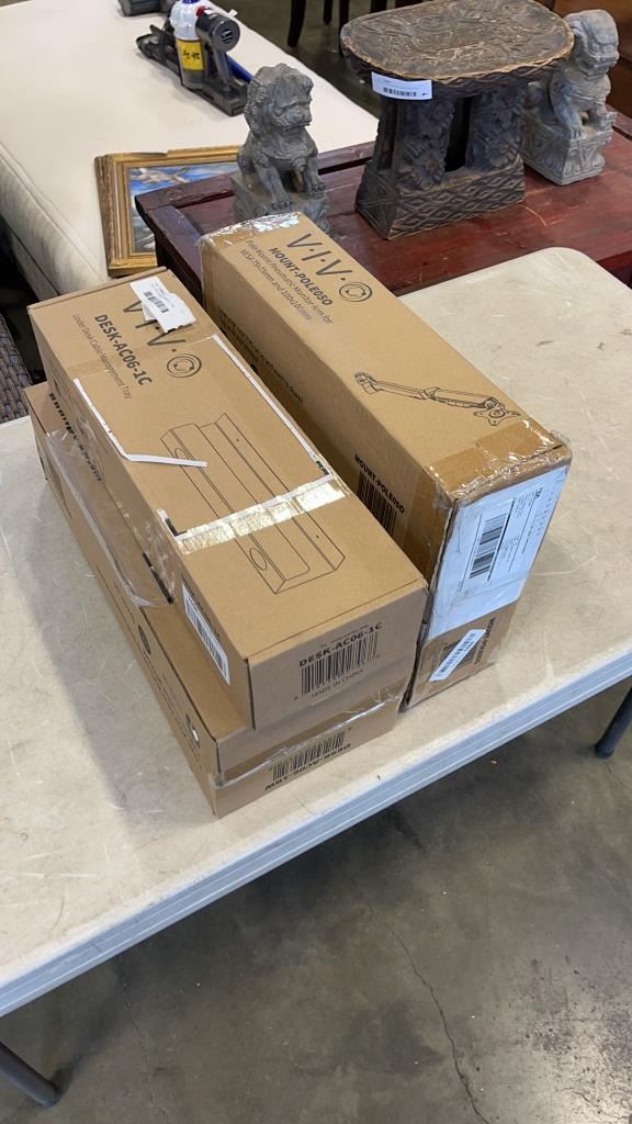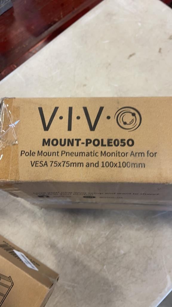 VIVO POLE MOUNT PNEUMATIC ARM MOUNT, UNDER DESK CABLE ORGANIZER, AND CABLE MANAGEMENT TRAY