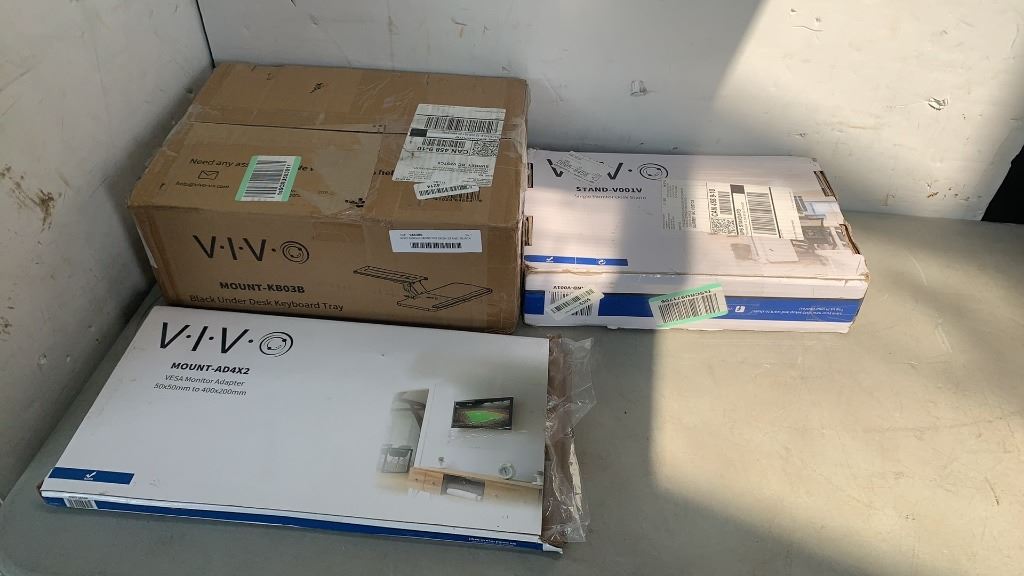 VIVO SINGLE MONITOR DESK STAND, BLACK UNDER DESK KEYBOARD TRAY AND VESA MONITOR ADAPTER