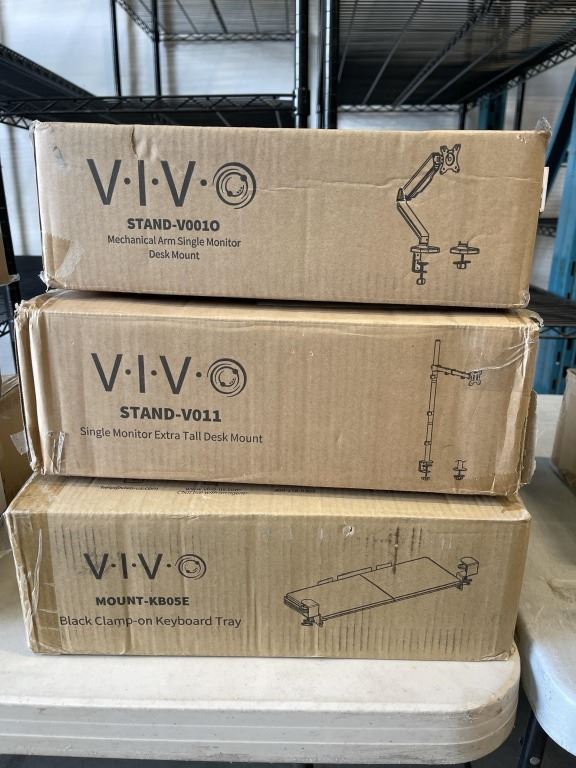 VIVO SINGLE MONITOR EXTRA TALL DESK MOUNT, SINGLE MONITOR ADJUSTABLE MOUNT, AND KEYBOARD TRAY