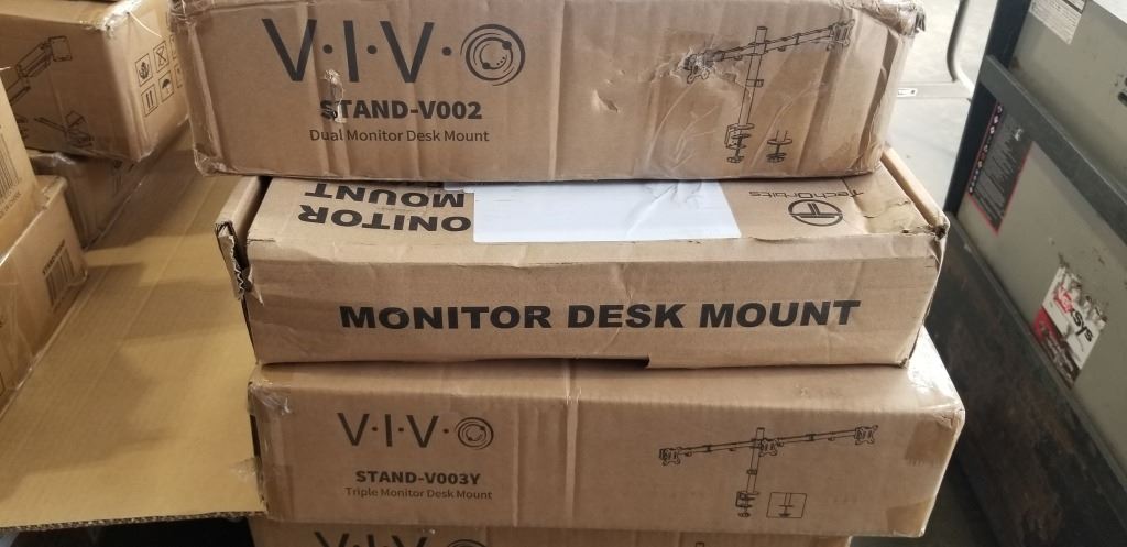 VIVO TRIPLE MONITOR DESK MOUNT, DUAL MONITOR DESK MOUNT AND TECH ORBITS DUAL MONITOR PNEUMATIC DESK MOUNT