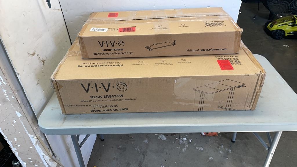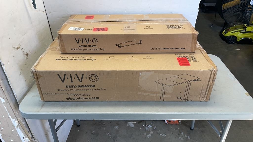 VIVO WHITE 43" X 24" ELECTRIOC DESK AND WHITE CLAMP ON KEYBOARD TRAY