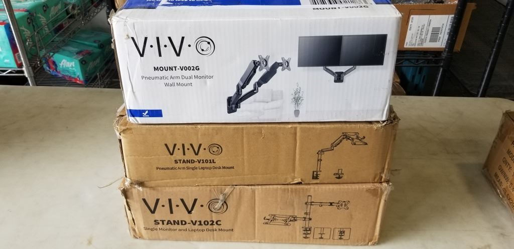 VIVO WHITE PNEUMATIC ARM DUAL MONITOR WALL MOUNT, VIVO PNEUMATIC ARM SINGLE LAPTOP DESK MOUNT, AND VIVO SINGLE MONITOR AND LAPTOP DESK MOUNT