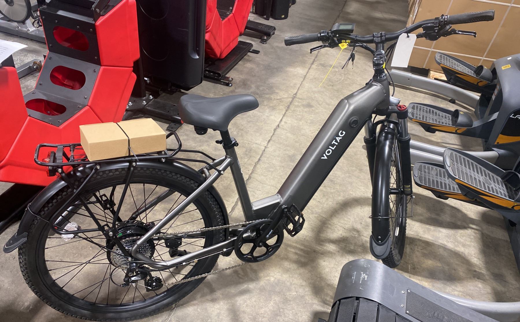 VOLTAG TITANIUM ELECTRIC BIKE WITH CHARGER ( NN-715026MDG ) - 100KM RANGE, HYDRAULIC DISC BRAKES, 9 LEVELS, LCD MULTI FUNCTION DISPLAY, HEADLIGHT + TAILLIGHT, ADJUSTABLE STEM + FRONT SUSPENSION FORK MOTOR: BAFANG G02 48V 500W NOMINAL, 750W PEAK OUTPUT, REAR GEARED HUB MOTOR BATTERY: SAMSUNG 48V 15AH ( 21700 CELLS ) TIRES: KENDA ALL TERRAIN 26" X 2.3" WEIGHT: 55LBS *IN BOX*
