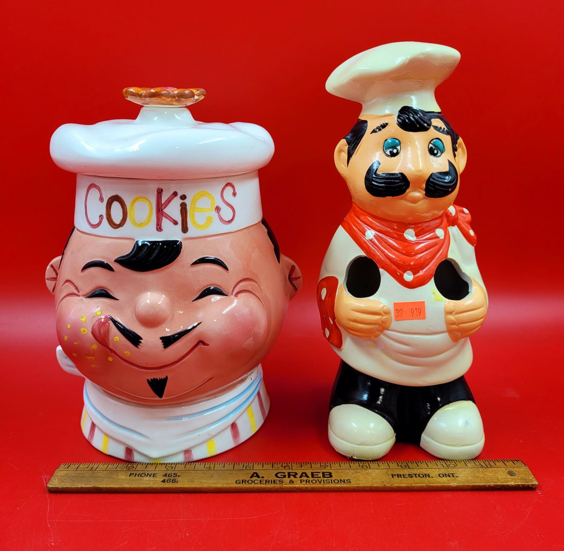 VTG Chef Utensil Holder & Hand-Painted Cookie Jar