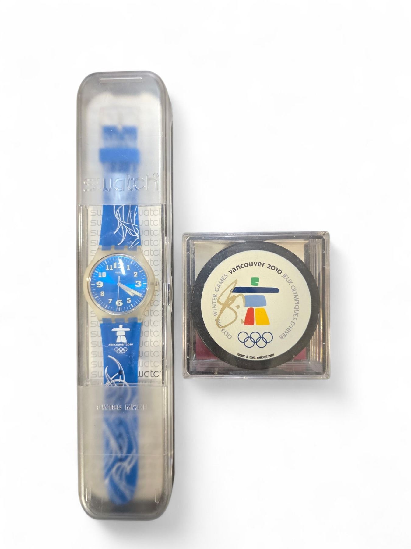 Vancouver 2010 Olympics Swatch Watch & Commemorative Puck - Original Boxes